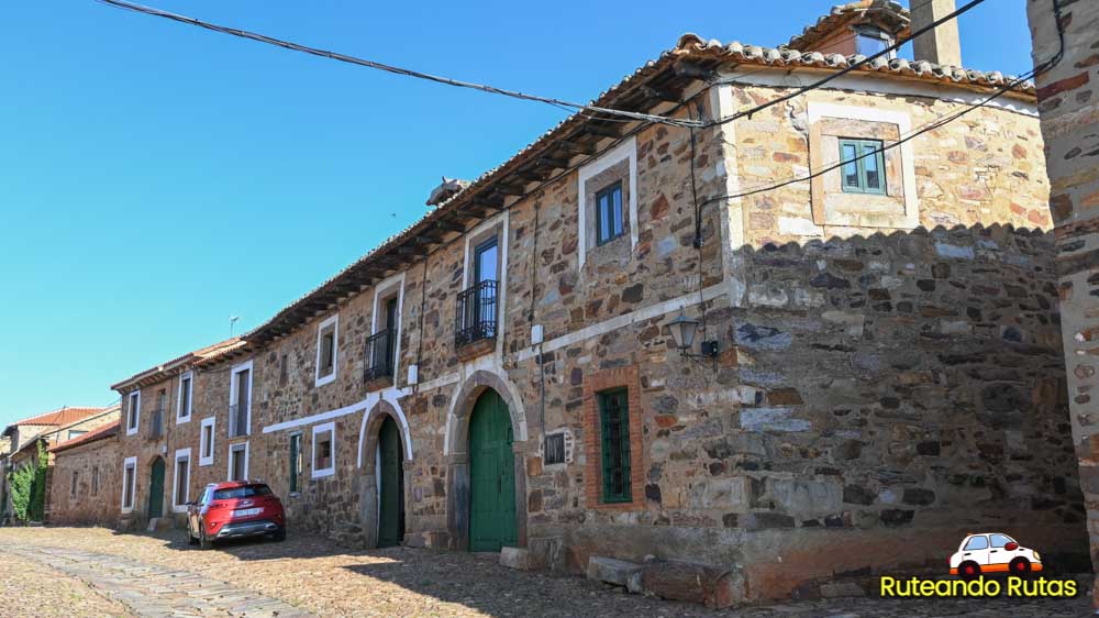Las puertas y ventanas de las casas están pintadas de colores vivos que contrastan con la piedra, creando un paisaje pintoresco digno de fotografiar.