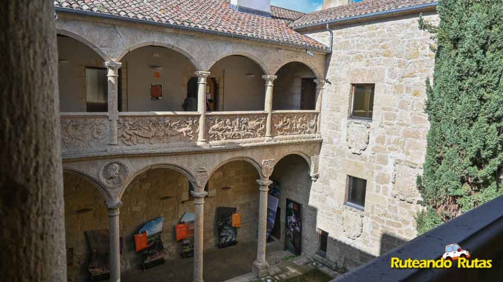 El patio es plateresco y en sus columnas se ven los escudos de sus linajes.