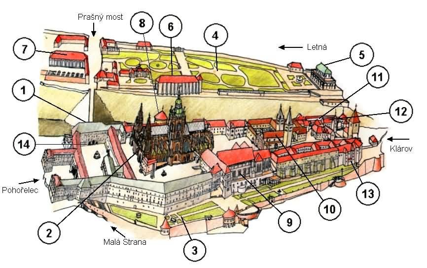 Realmente no es un castillo, sino un conjunto de edificaciones de todo tipo. Fue la residencia de los reyes de Bohemia, fundada en el siglo IX, pero no dejó de ampliarse en siglos posteriores.