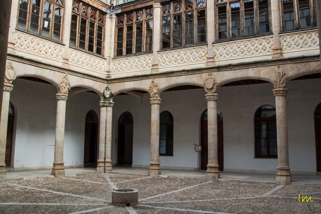 Es un palacio gótico del siglo XV, ha sido muy modificado a lo largo de la historia. Del palacio destacan sus 2 patios: un patio de piedra y madera con 16 blasones, con escenas de caza y tauromaquia y el patio del siete, llamado así por su curiosa forma.